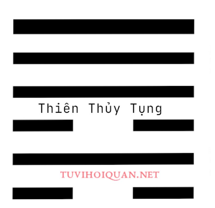 Quẻ Thiên Thủy Tụng: Là một quẻ "Hung" trong Kinh Dịch, và từ ngữ "Tụng" trong tên quẻ này có nghĩa là kiện tụng, tố tụng, tranh biện phải trái, đề cập đến một tình huống không tốt. Quẻ này đưa ra một bài học quan trọng cho người quân tử về việc tránh xa những mâu thuẫn và xung đột, cũng như tìm hiểu nguyên nhân gốc rễ của sự kiện tụng.